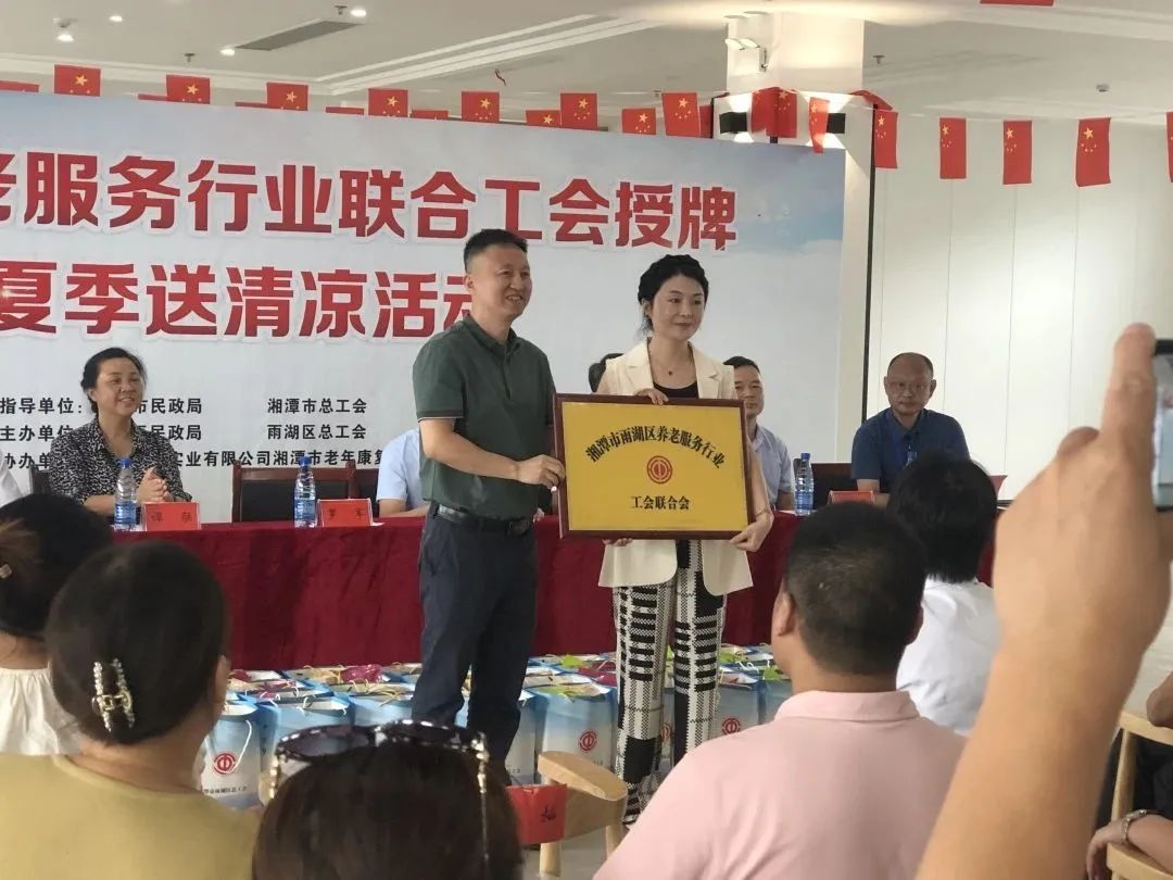 雨湖區(qū)養(yǎng)老服務(wù)行業(yè)聯(lián)合工會舉行授牌儀式,華遠(yuǎn)康養(yǎng)中心法人譚燦任工會主席