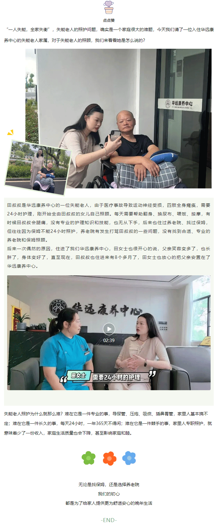 華遠(yuǎn)康養(yǎng)|失能老人照護(hù)難題:保姆還是養(yǎng)老院?