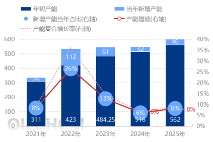 2  2021-2025中國(guó)生物柴油年度產(chǎn)能變化趨勢(shì)圖(萬(wàn)噸/年)