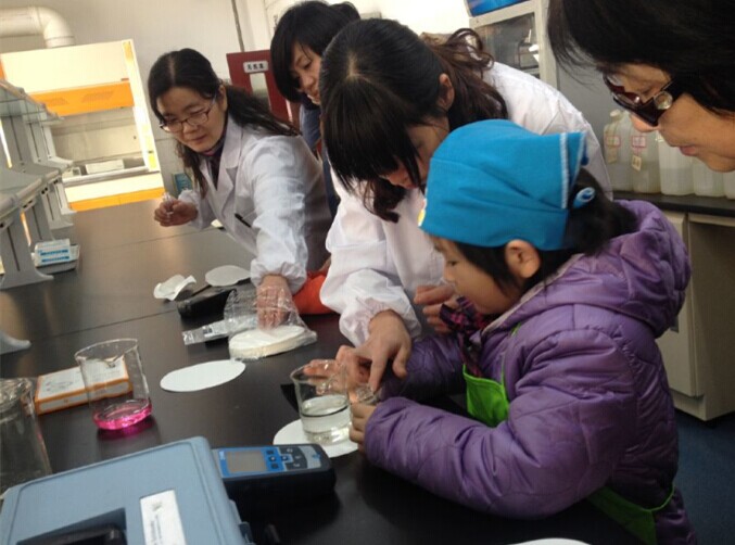 參觀展示館后,小記者們前往此次“親水之旅”的最后一站――市水務(wù)集團(tuán)水質(zhì)監(jiān)測中心。一位穿著白色實(shí)驗(yàn)服的叔叔早已在中心樓下等待孩子的到來,小記者們看著這位衣著和醫(yī)生一樣的叔叔,紛紛躲在了家長和老師的身后,怯生生地問:“這里是醫(yī)院嗎?怎么這位叔叔穿著醫(yī)生的衣服呀?”這位“醫(yī)生”叔叔聽后笑著說:“這里是水務(wù)集團(tuán)的水質(zhì)監(jiān)測中心,也可以說是‘醫(yī)院’,但不是給人看病的喲,而是給自來水檢查‘身體’和看病的地方喲!”聽完“醫(yī)生”叔叔的解釋后,小記者們更加好奇了,迫不及待地想去一探究竟。小記者們來到了監(jiān)測中心的主體樓層,該中心副主任鮑潔接待了他們。為了讓孩子們能聽懂專業(yè)的水質(zhì)檢測知識,不僅為他們講解了水質(zhì)檢驗(yàn)的用途和常用方法,還帶著他們參觀了實(shí)驗(yàn)室和儀器室。在實(shí)驗(yàn)室里,鮑主任手把手地教小記者們做水中余氯的實(shí)驗(yàn),當(dāng)看到取樣瓶中的水樣經(jīng)過藥劑作用后,從透明變?yōu)樽霞t色,小記者們的眼神中充滿了好奇,興致勃勃地詢問著原因。鮑主任耐心地一一作答;鮑主任還帶著他們參觀了原子吸收室、油分析室、污水監(jiān)測室等實(shí)驗(yàn)室,為小記者們講解各種檢驗(yàn)儀器的用途和操作方法??粗@些“機(jī)器手”完成自動(dòng)取樣、滴入藥劑、分析數(shù)據(jù)等步驟后,小記者們驚嘆了:“原來有這么多高科技的儀器為自來水的水質(zhì)安全護(hù)航把關(guān)??!”