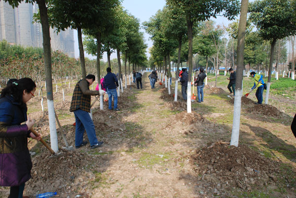 陽(yáng)春三月,草長(zhǎng)鶯飛。在這大地回春,萬(wàn)物復(fù)蘇之際,房產(chǎn)集團(tuán)公司工會(huì)組織開(kāi)展了以綠化養(yǎng)護(hù)為主要內(nèi)容的植樹(shù)節(jié)活動(dòng)。3月12日上午,公司機(jī)關(guān)及基層各單位職工共30余人帶著鐵鍬等工具,來(lái)到國(guó)博中心苗圃基地,在基地技術(shù)人員的現(xiàn)場(chǎng)示范、指導(dǎo)下,對(duì)我公司栽種的樟樹(shù)、桂花樹(shù)、紅葉石楠等樹(shù)木進(jìn)行了養(yǎng)護(hù)。