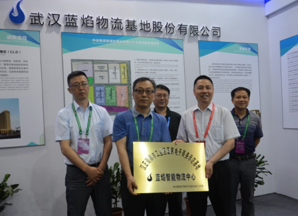 5月18日,在第九屆中國(guó)中部投資貿(mào)易博覽會(huì)暨首屆中國(guó)(武漢)國(guó)際電子商務(wù)展上,?口區(qū)區(qū)長(zhǎng)景新華現(xiàn)場(chǎng)授予武漢藍(lán)焰電商城(藍(lán)焰智能物流中心) “國(guó)家電子商務(wù)示范基地”的稱號(hào)。武漢藍(lán)焰物流公司董事長(zhǎng)袁云飛、常務(wù)副總經(jīng)理田勇參加了授牌儀式。